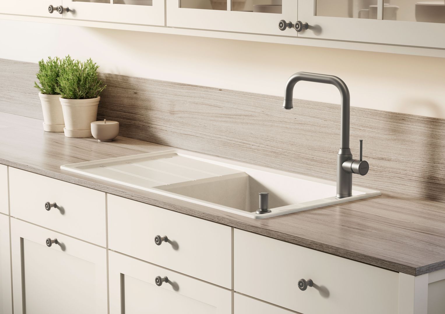Profi-Tipp von Wohnideen Hueter: In der Küche geht es immer auch um Platz, Stauraum und darum, alles griffbereit zu haben. Clevere Lösungen schaffen Raum. Wenn Geschirrspüler, Küchenmaschinen oder andere technische Geräte intelligent angeordnet werden, kann jeder Winkel genutzt werden, was besonders in kleineren Küchen wichtig ist.
